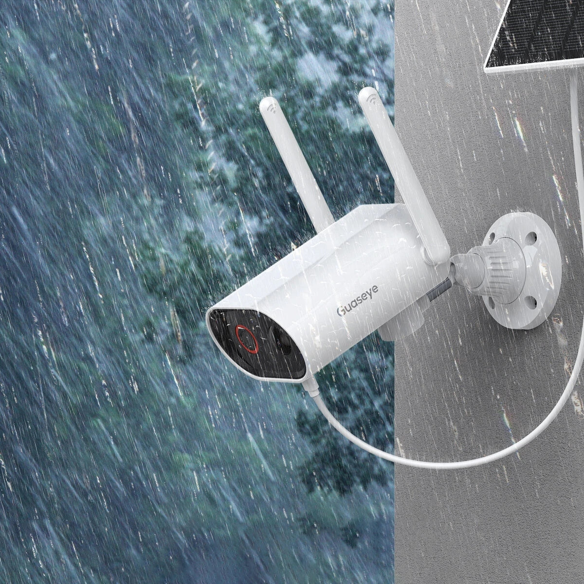 Guaseye security camera outdoor features more stable 2.4GHz Wi-Fi connection, allowing you to connect at any time via once set-up. Built-in 10000mAh high-capacity battery and supplied solar panel ensure long time use. 3-meter cable and adjustable bracket provide wide range and angle for installation, giving you 24H security monitoring. (Note: Please fully charge for the first use and install it after connected with the App.)